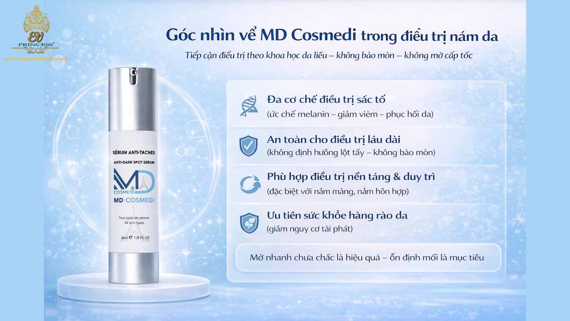 Trong nhóm mỹ phẩm trị nám da hiệu quả theo hướng điều trị bền vững, MD Cosmedi được đánh giá cao nhờ: