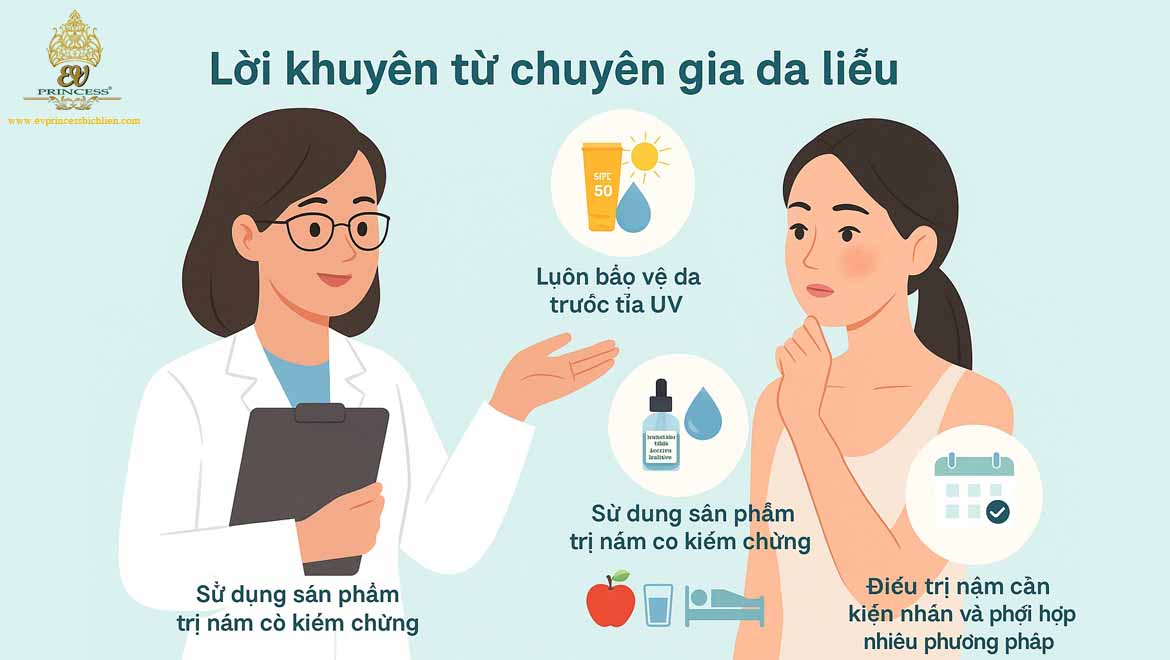 Việc kết hợp phương pháp trị nám da cùng chăm sóc da khoa học sẽ giúp đạt kết quả tối ưu và bền vững.
